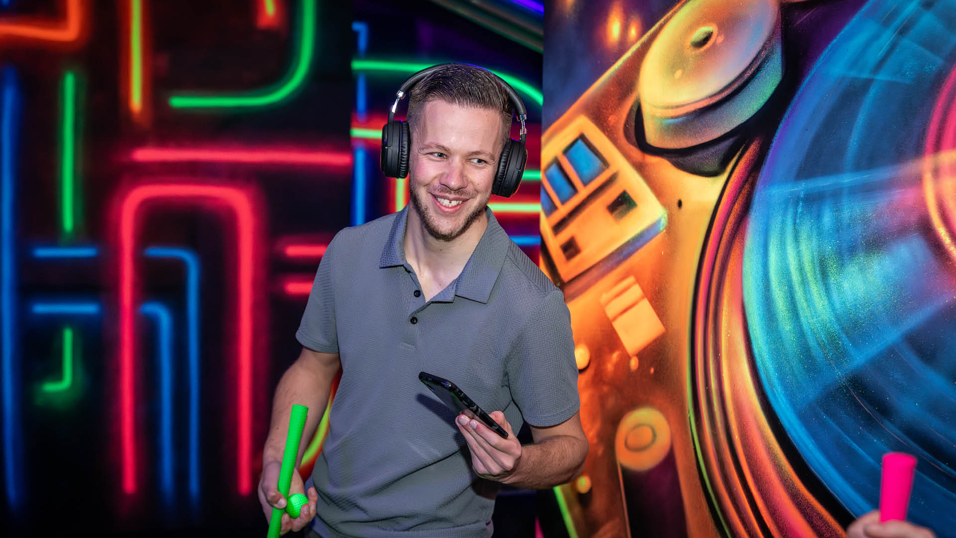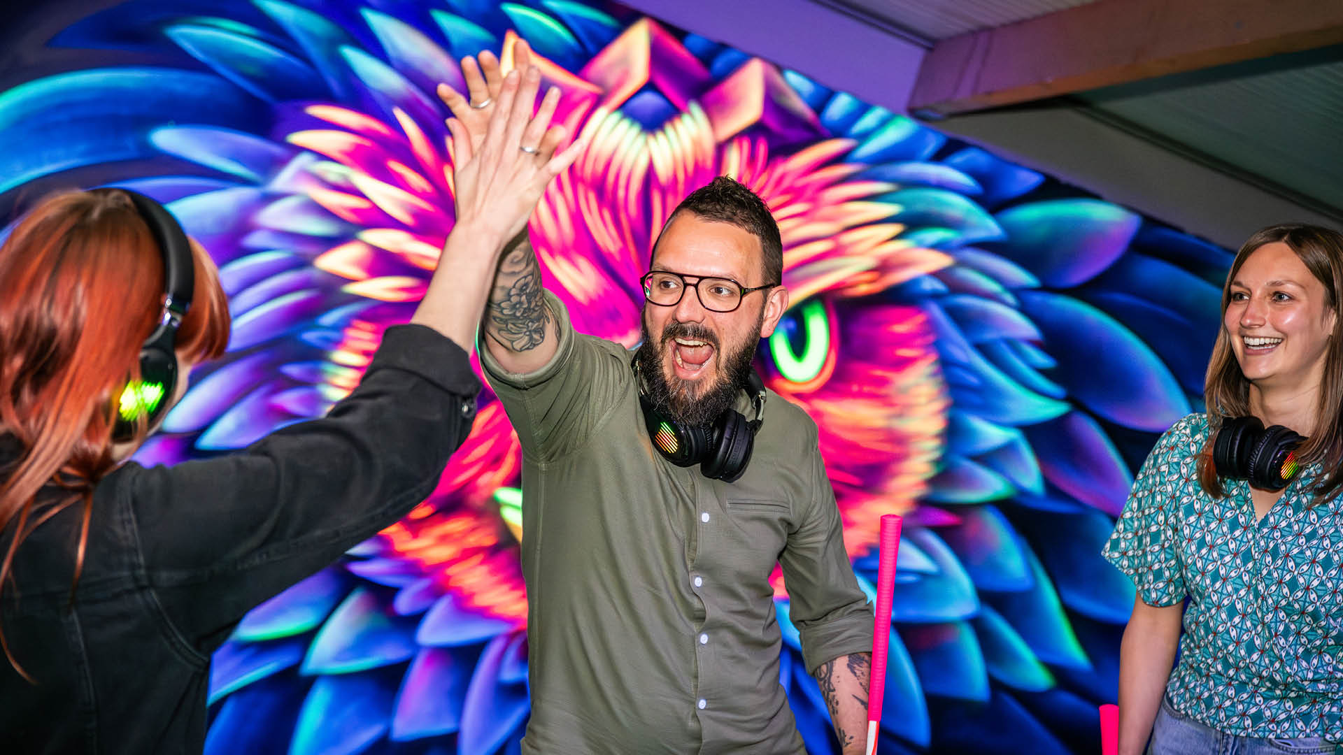 Erleben Sie die Atmosphäre von Glow Minigolf